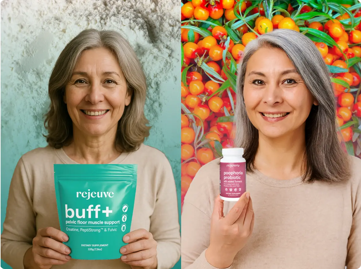 Stop treating leaks with pads and panic. This 2-part system addresses the two biggest leak triggers - chronic constipation that weakens your pelvic floor, and muscle weakness that can't hold things in - so you can finally feel confident and in control again.